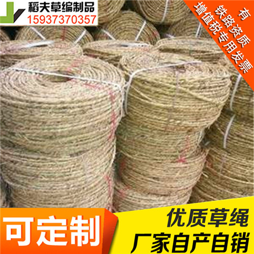 草绳又叫稻草绳是一种以稻草秸秆为原料经过专用的草绳机加工而成的草制品。草绳以廉价及对环境无污染的优势,在市场中一些行业中有着不可代替的地位,其主要应用于园林绿化业中对树木的保护;对管道工程施工时对管道的一些保护及对一些企业产品的外在的保护。因为草绳是以水稻秸秆为原料,水稻秸秆本身就有很好的减震性,所以经过加工后的草绳在缠绕到物品上之后就有更好的保护性。 草绳的制作简单,实用用途广泛,而且在园林绿化中也有着非常重要的作用,是现在园林中z长使用到的保护产品之一。草绳是由稻草加工而成,价格低廉,对环境无污染,是一种属于绿色环保的农业加工产品。草绳的用途很广主要用于:瓷器厂,砖瓦厂,预制件机械厂,园林公司,建筑工地等。由于草绳的用途越来越广,市场中对草绳的需求也不断的扩大,现在已经成了农民一项创收的主要途径。